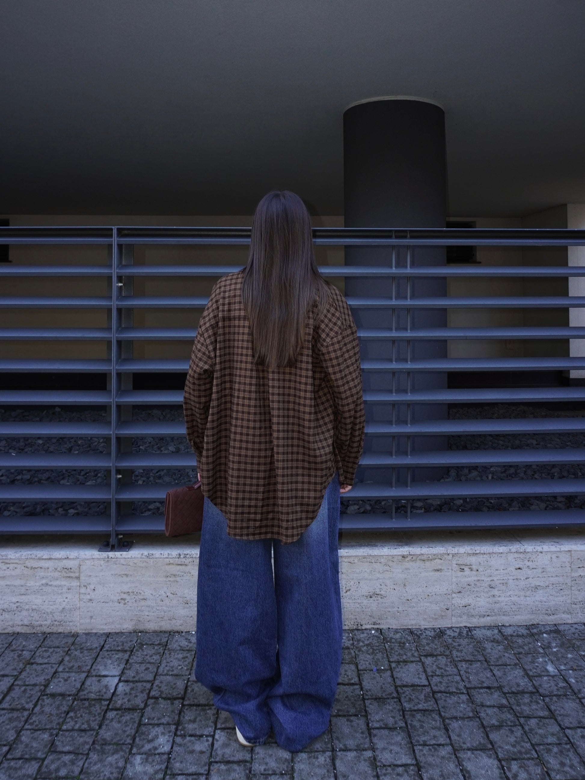 Jeans modello balloon con cinque tasche, chiusura con zip e bottone.