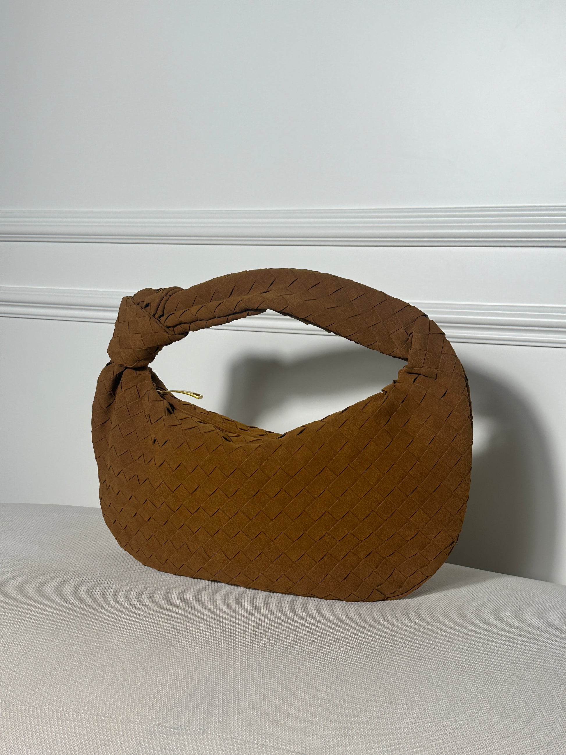 Maxi bag effetto camoscio con nodo intrecciata. Chiusura con zip.