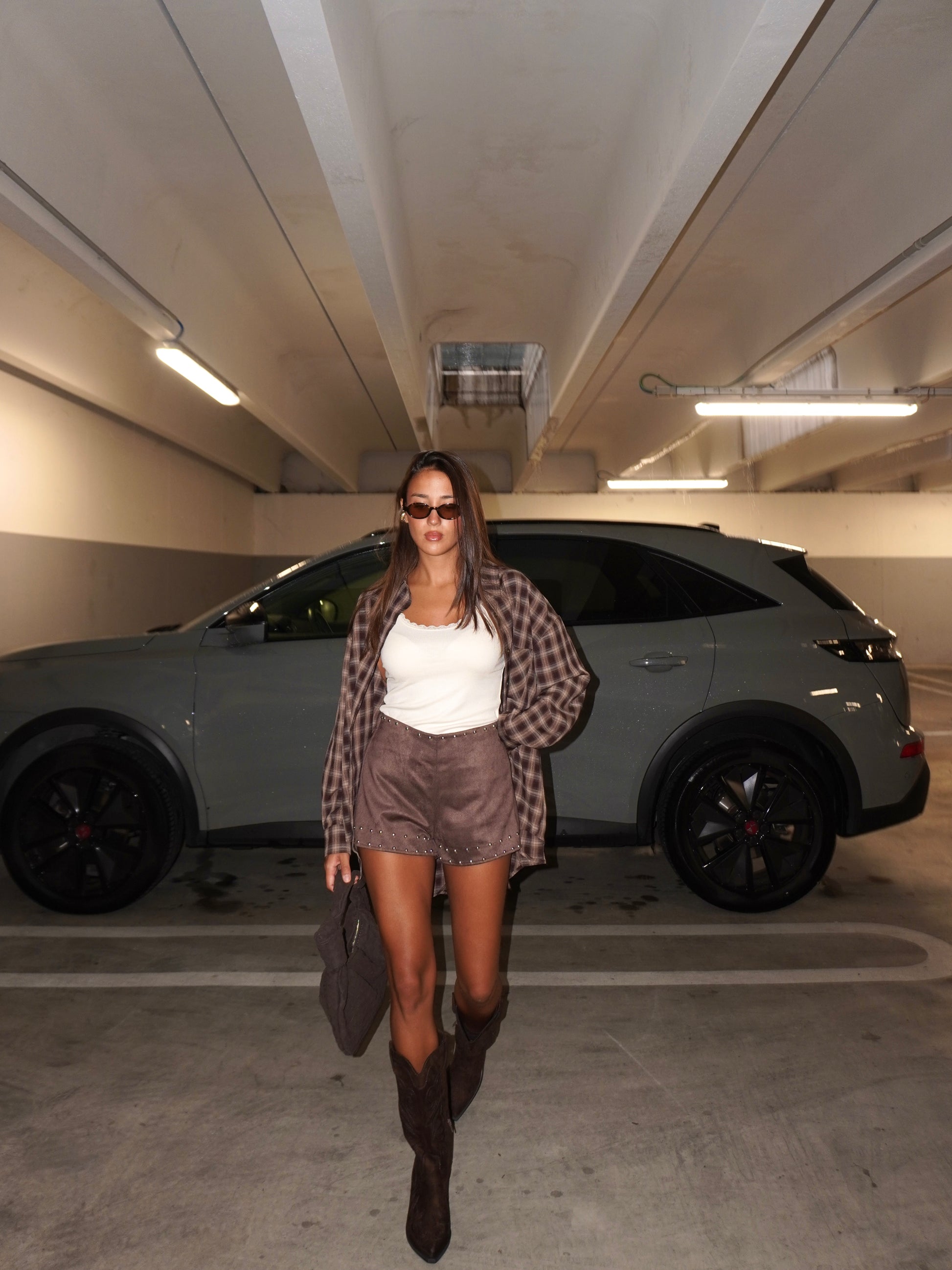 SHORTS IN SIMIL CAMOSCIO CON BORCHIE