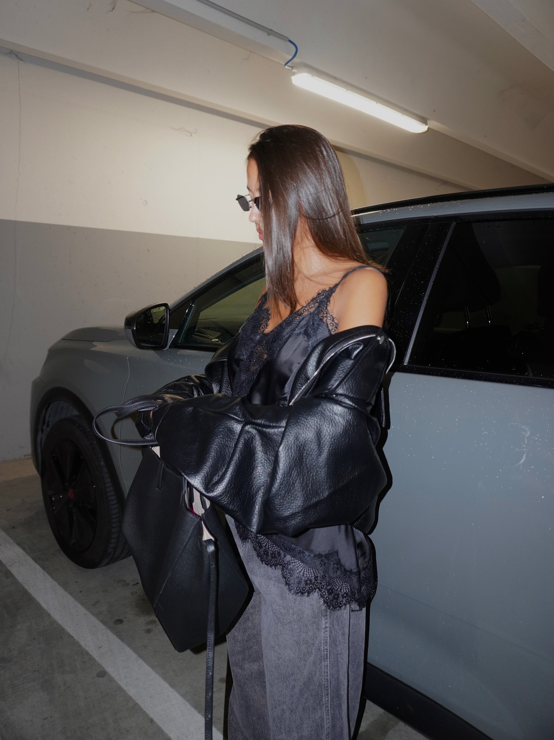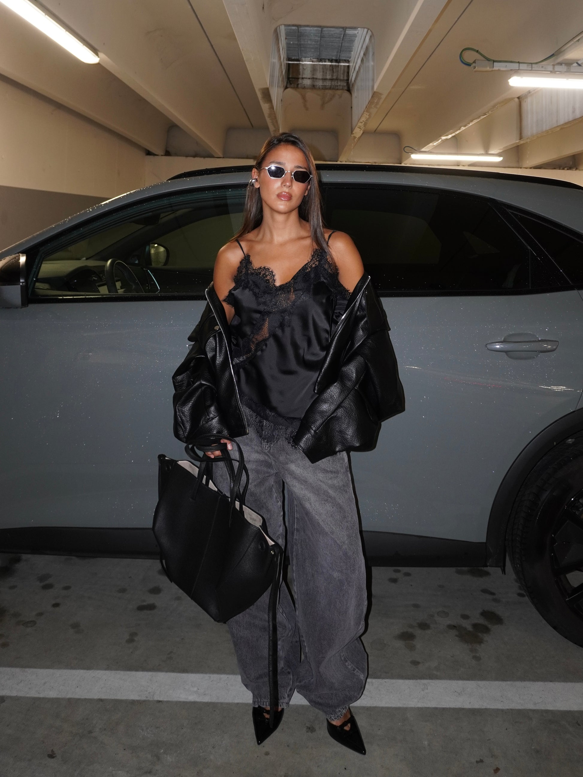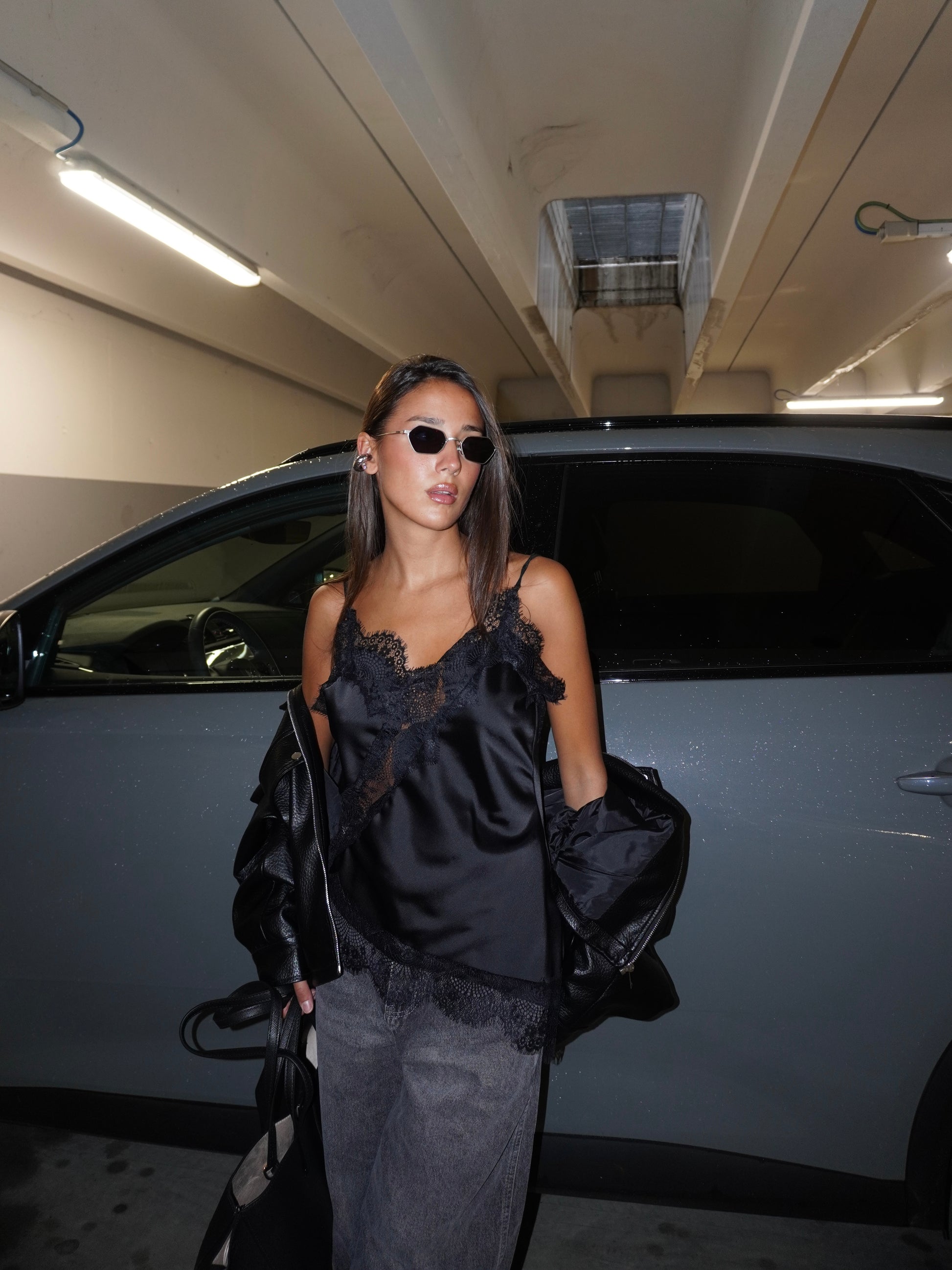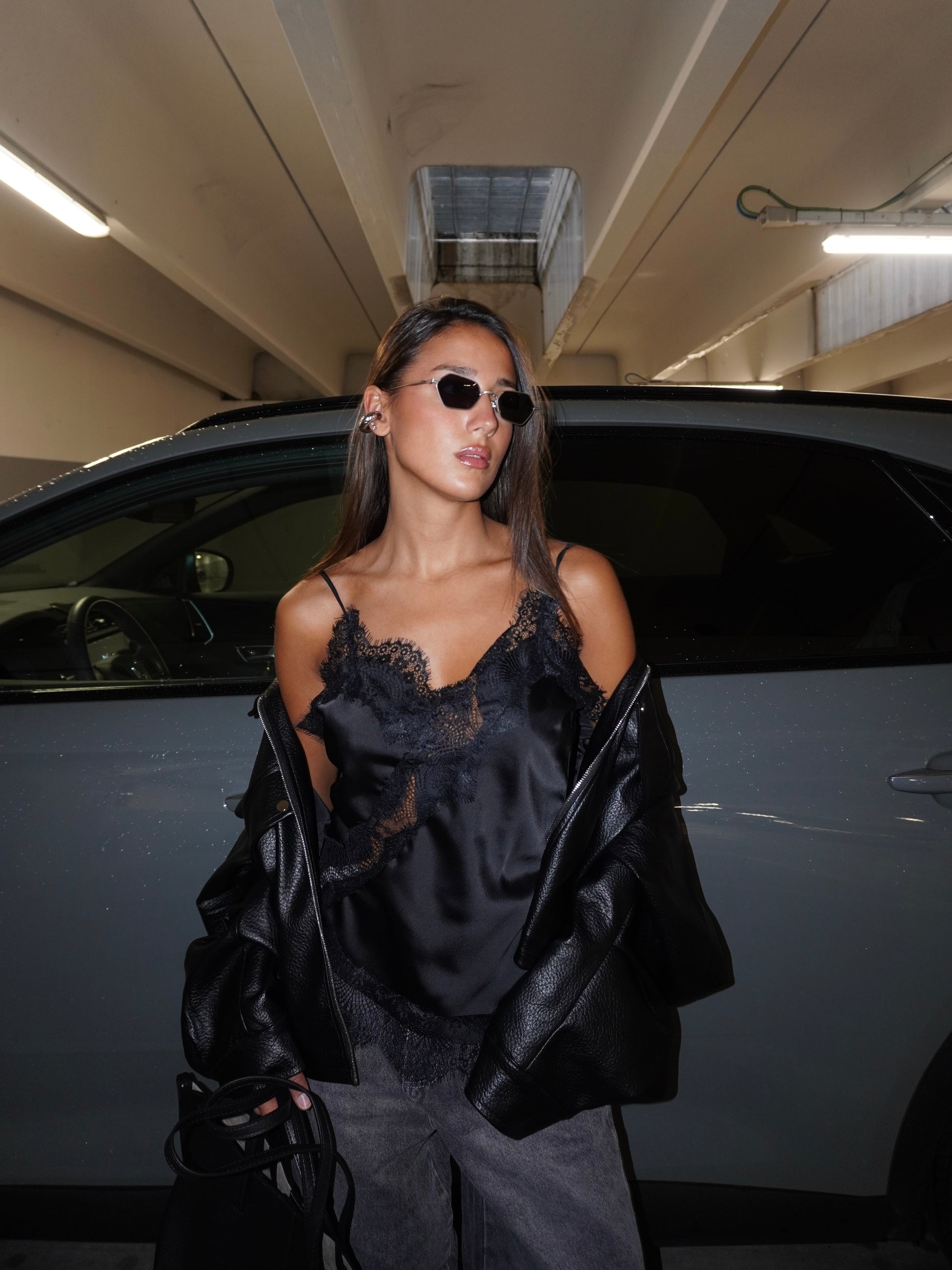 Canotta in simil raso con dettaglio di pizzo. Presenta bretelle sottili.