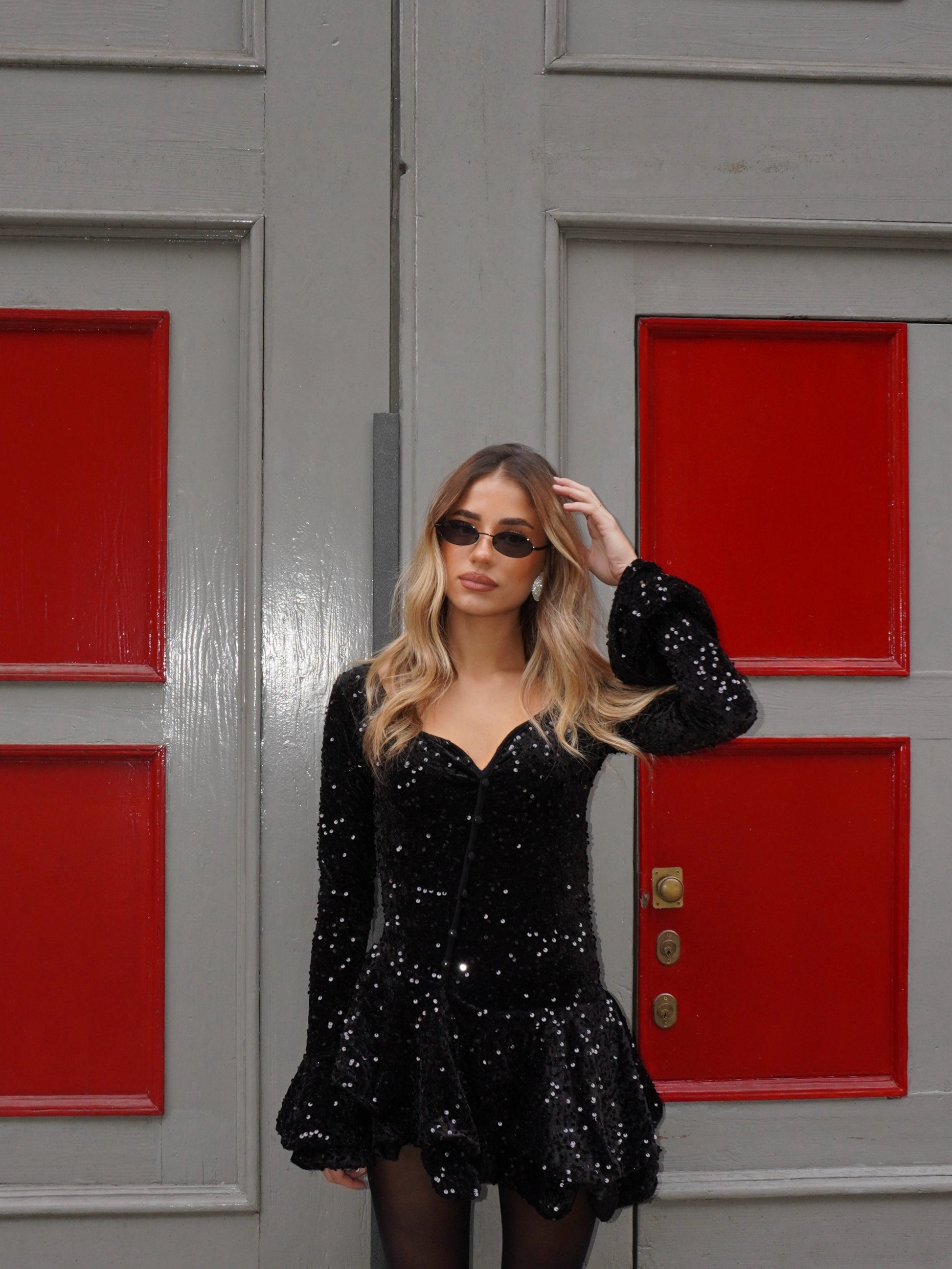ABITO CORTO CON BOTTONI E PAILLETTES