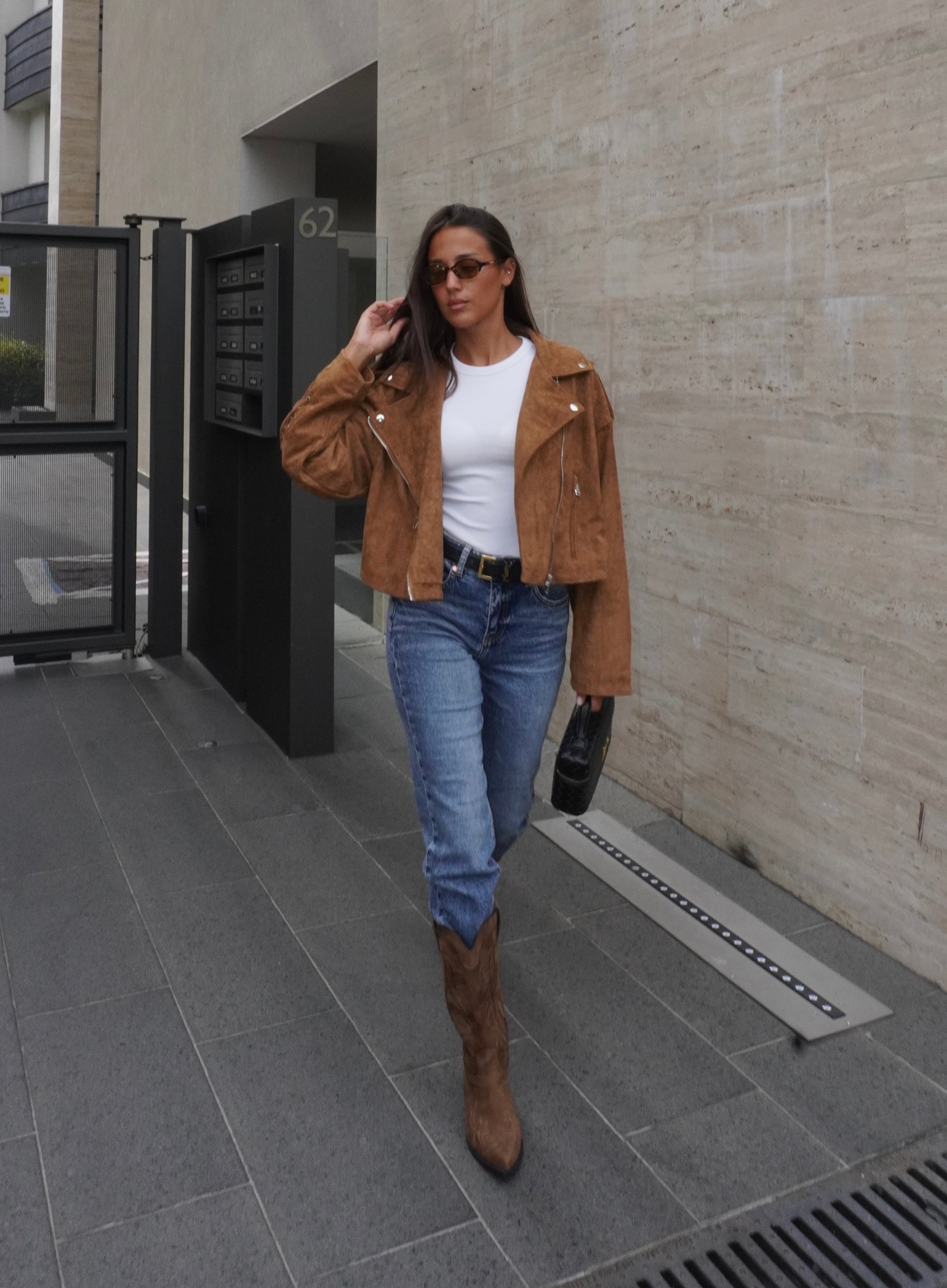 BIKER STRINGATO IN SIMIL CAMOSCIO