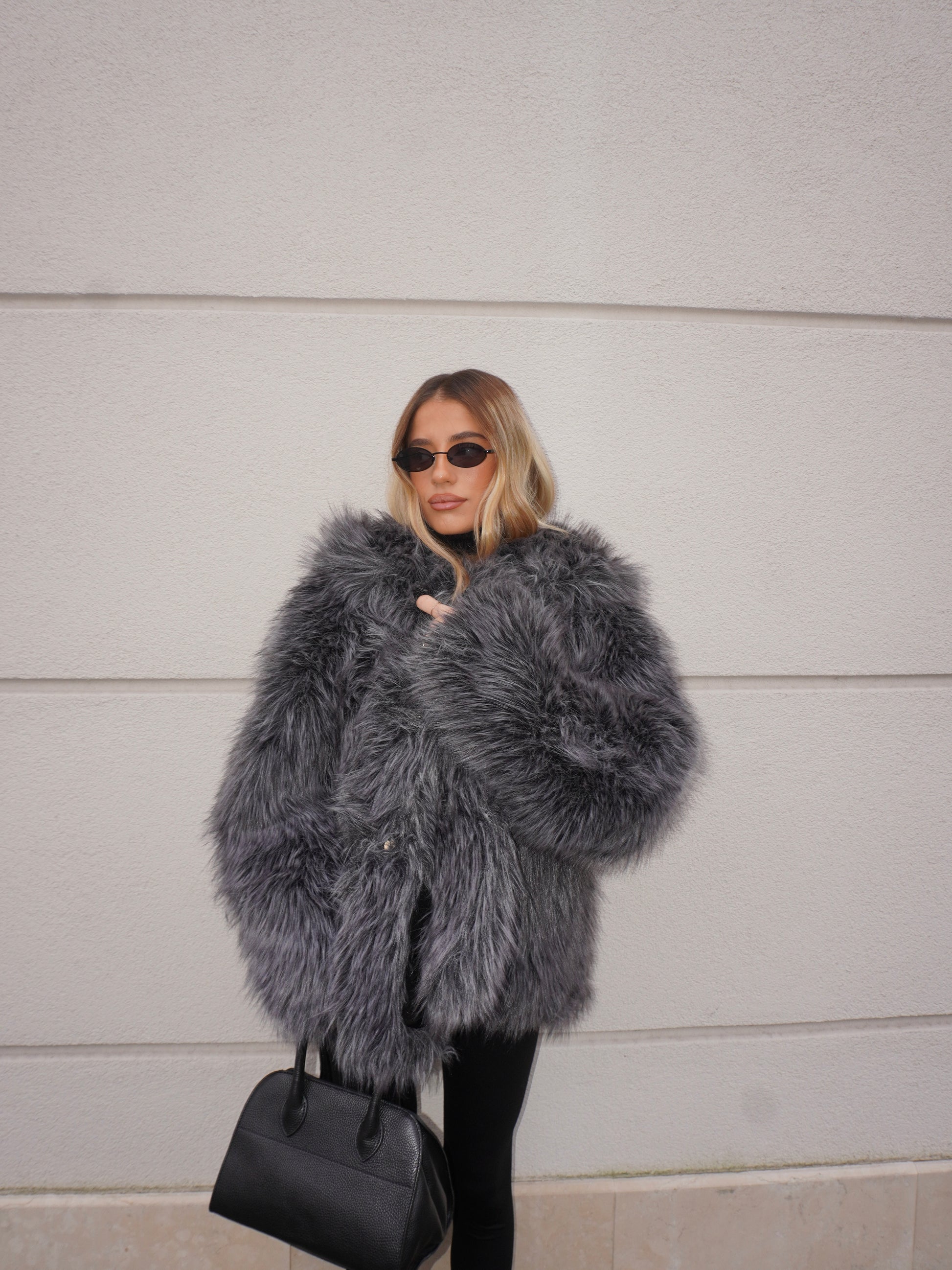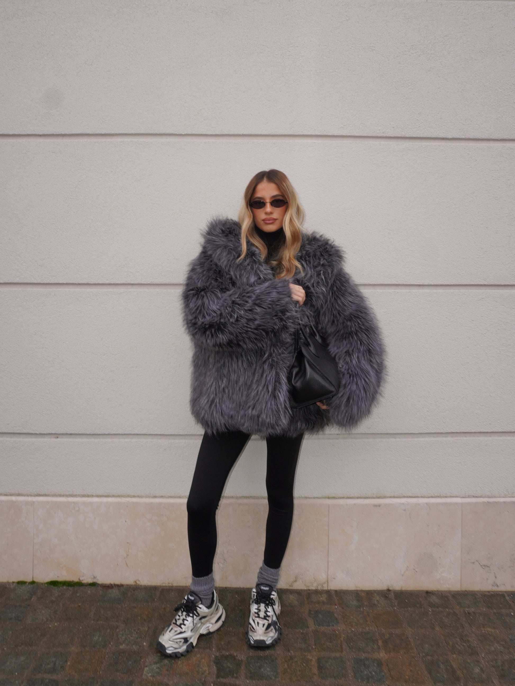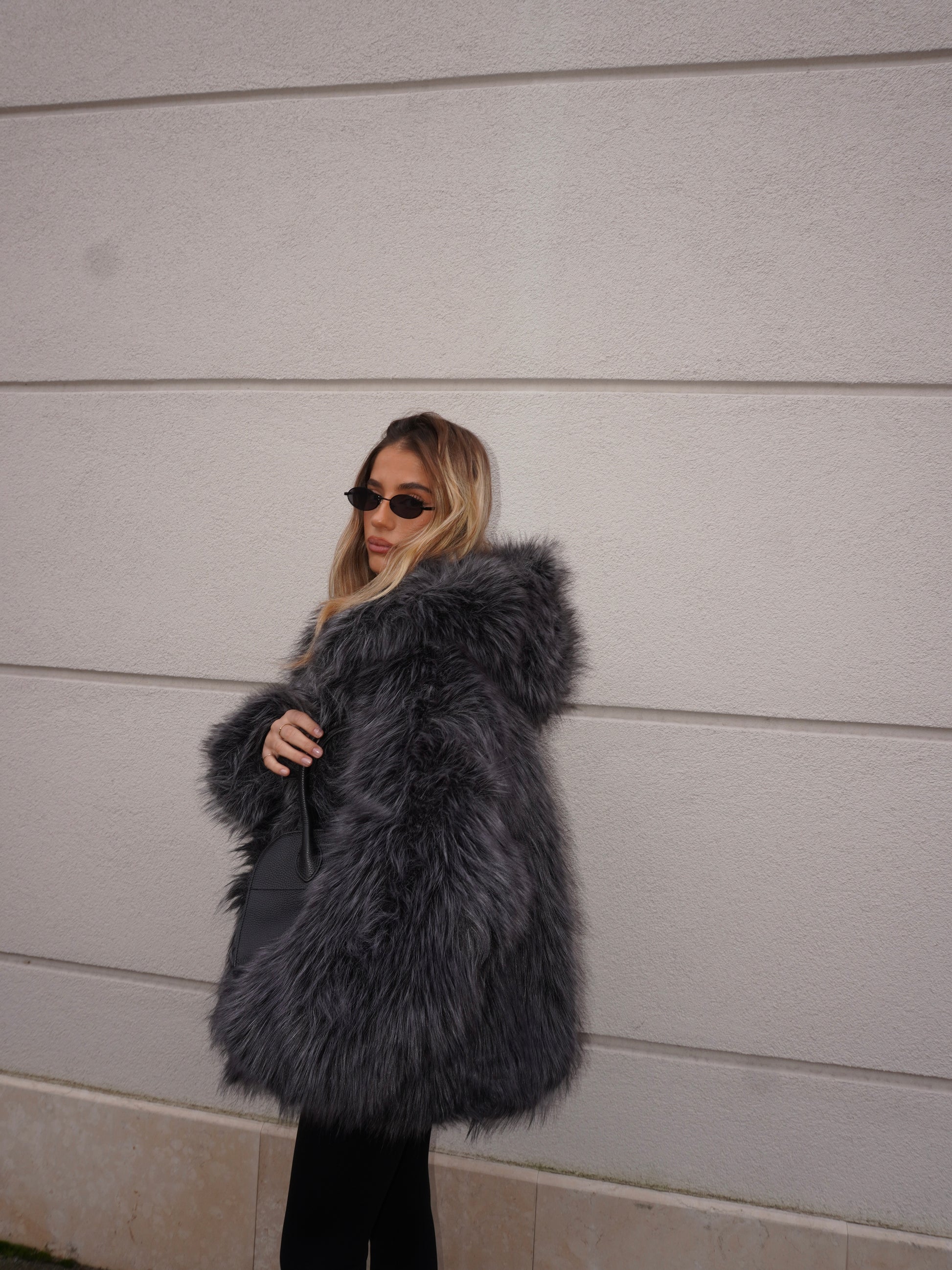 ECOPELLICCIA CON CAPPUCCIO GRIGIO SFUMATO