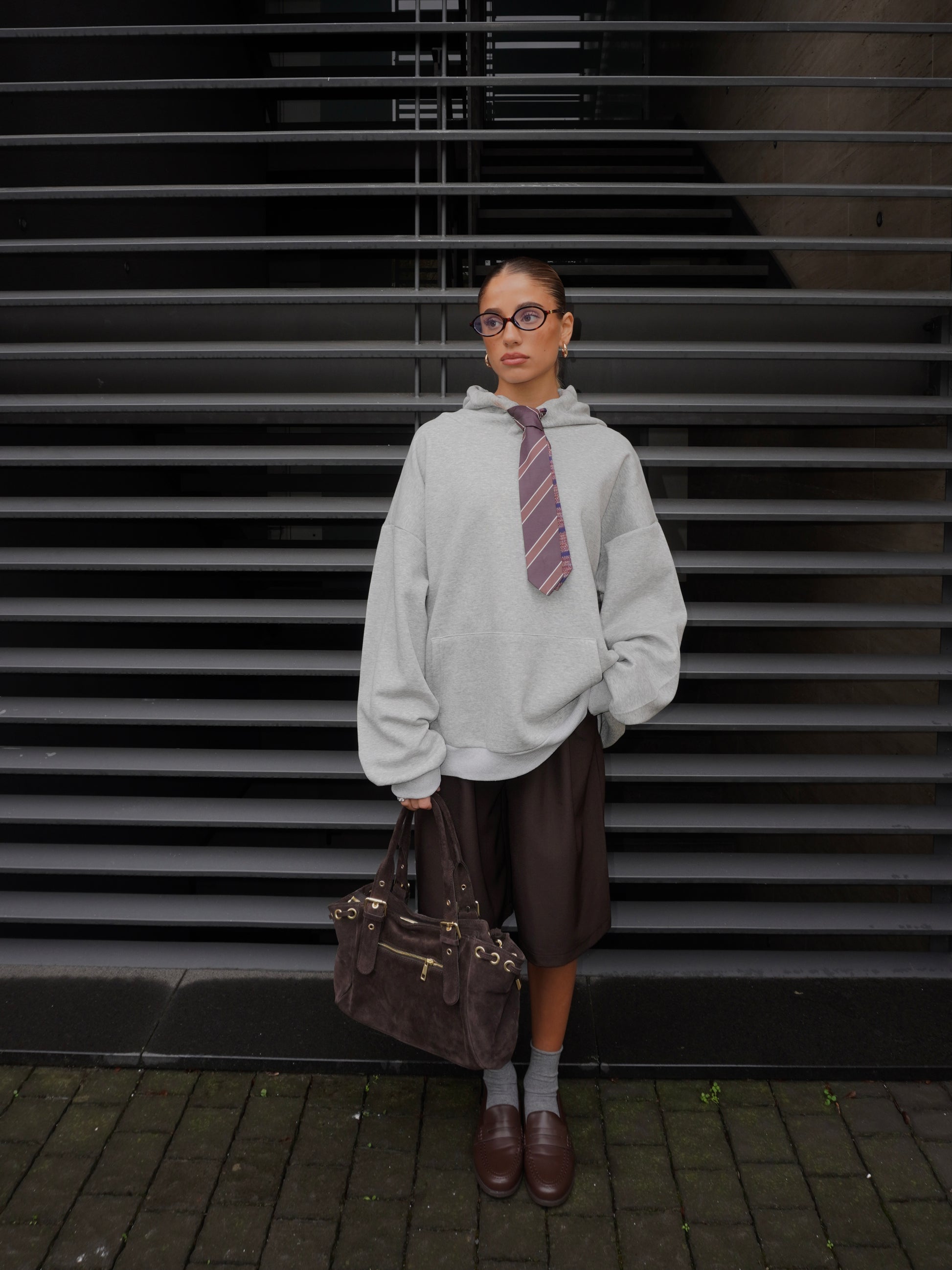 FELPA CON CAPPUCCIO E CRAVATTA