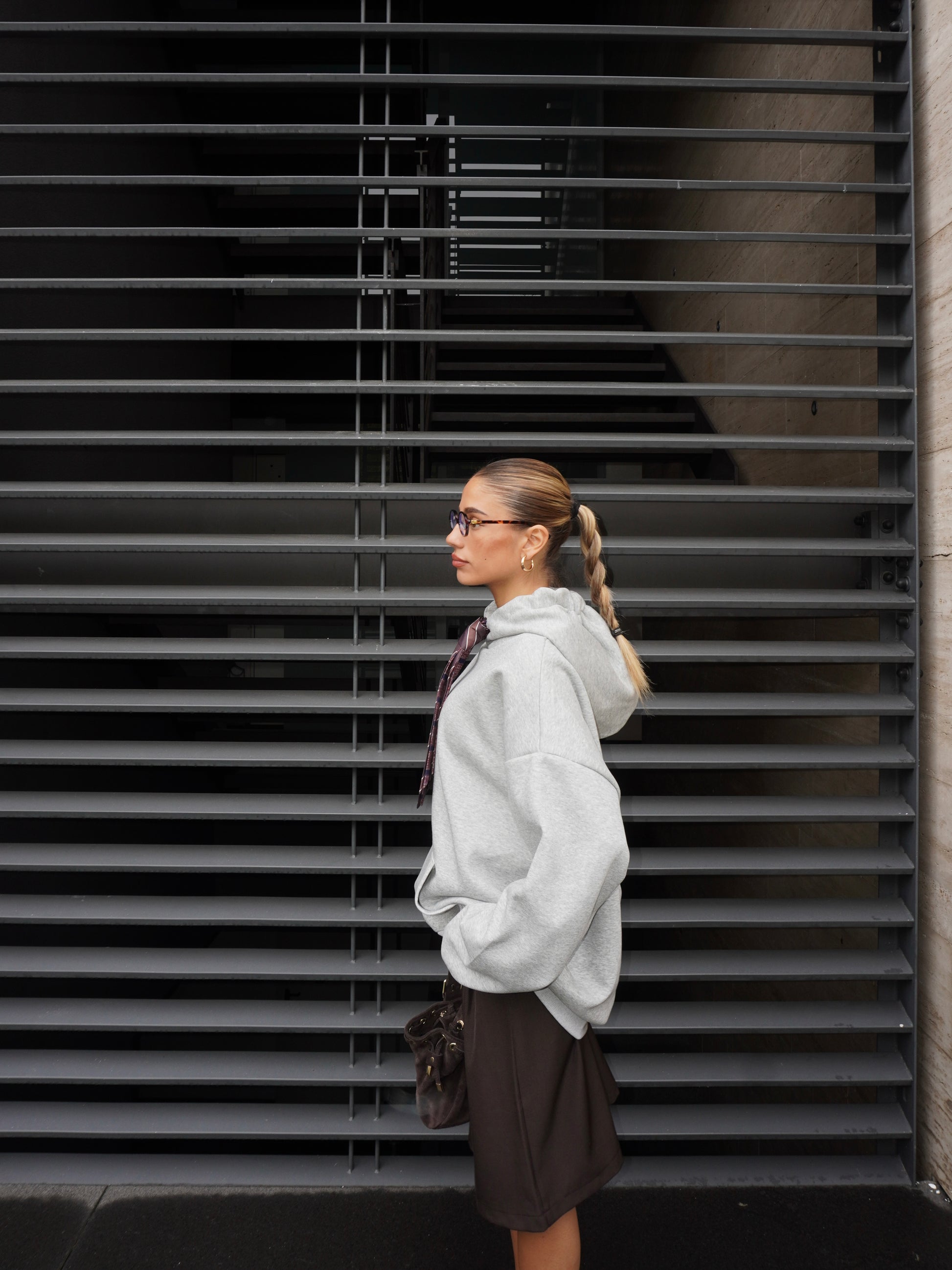 Felpa oversize con cappuccio con dettaglio di cravatta. Presenta tasca sul davanti.