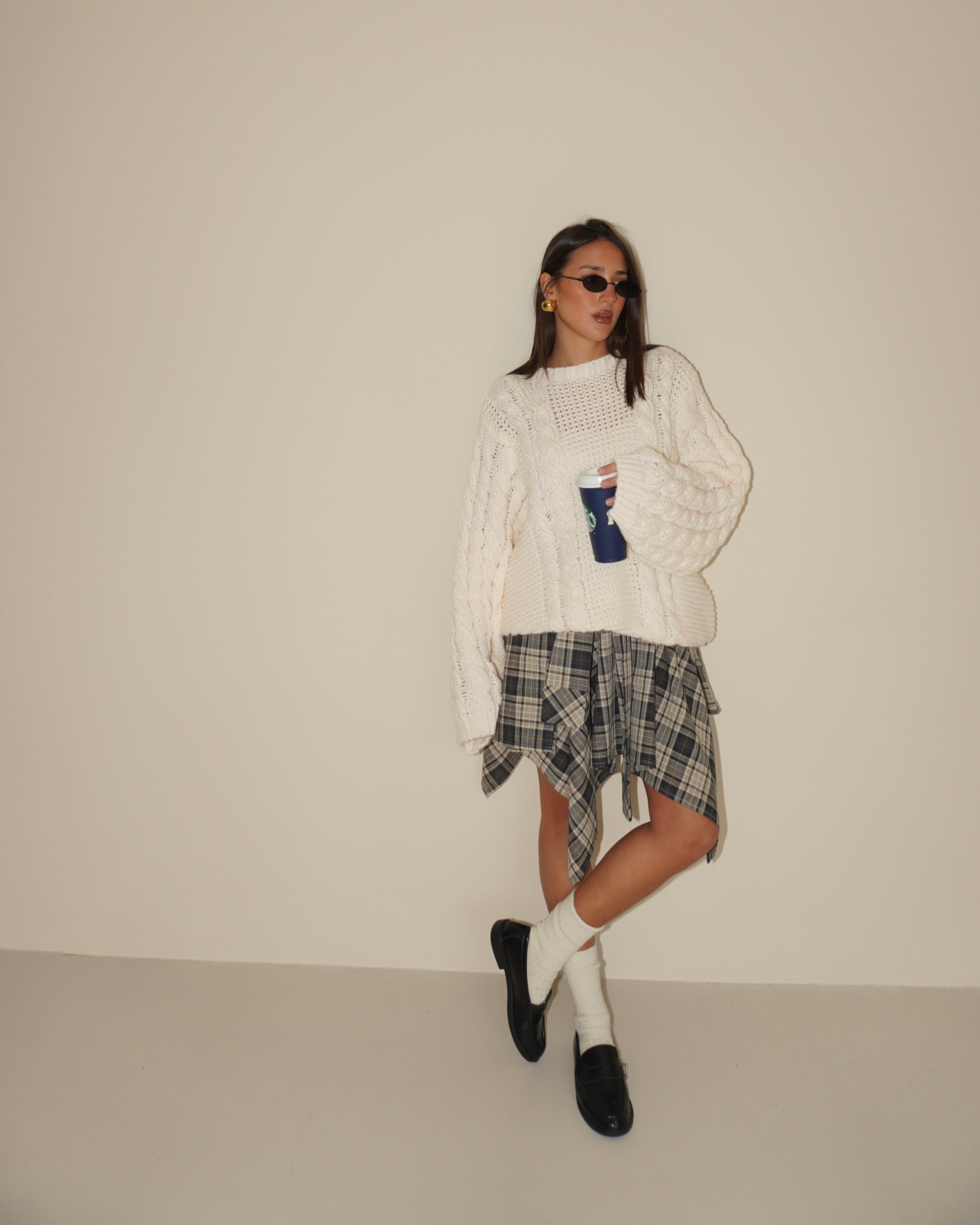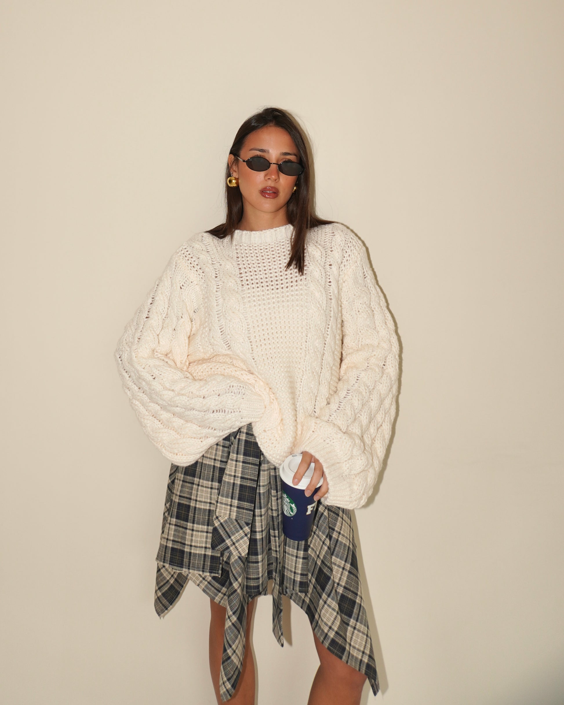 Maglione oversize intrecciato ecrù.