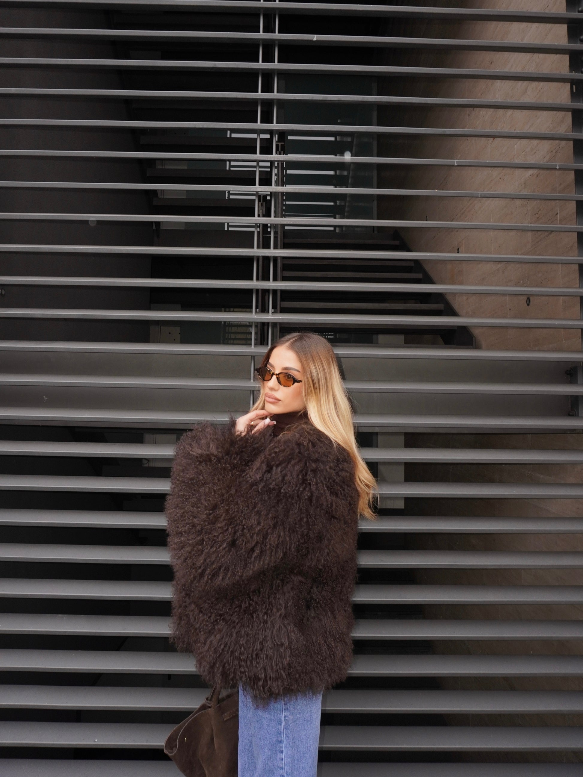Pelliccia vera Mongolia. Presenta tasche, chiusura con gancini.