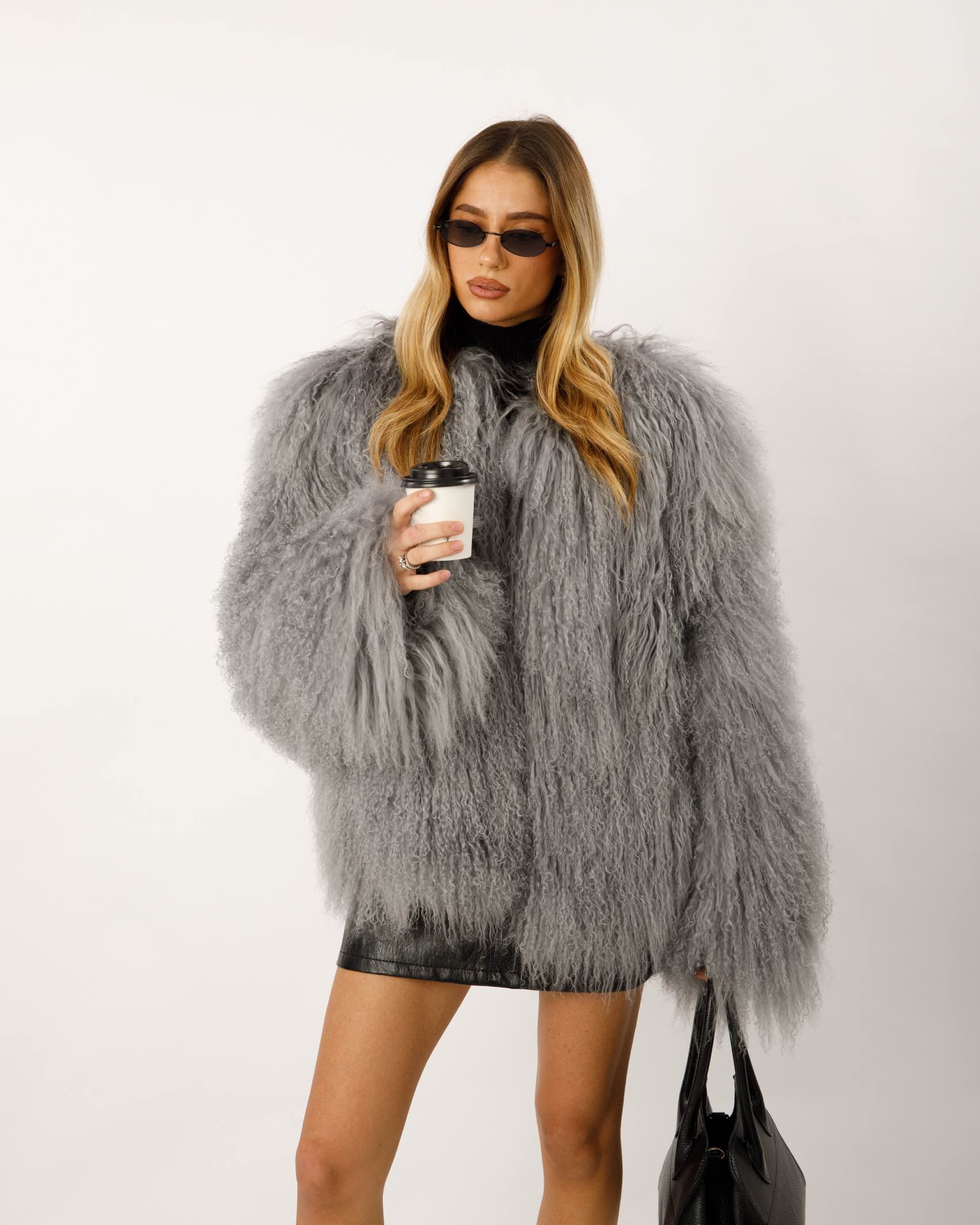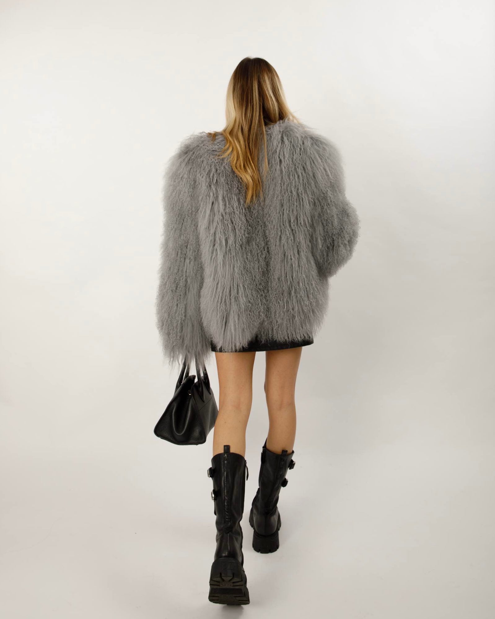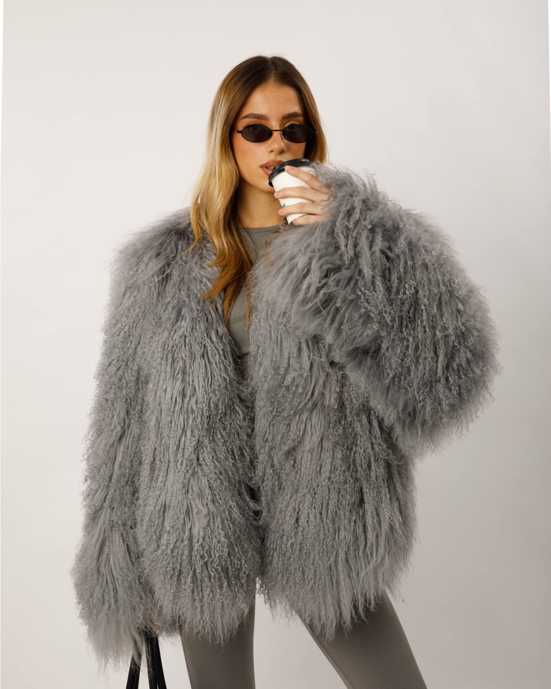 Pelliccia vera Mongolia foderata all’ interno Presenta tasche, chiusura con gancini.