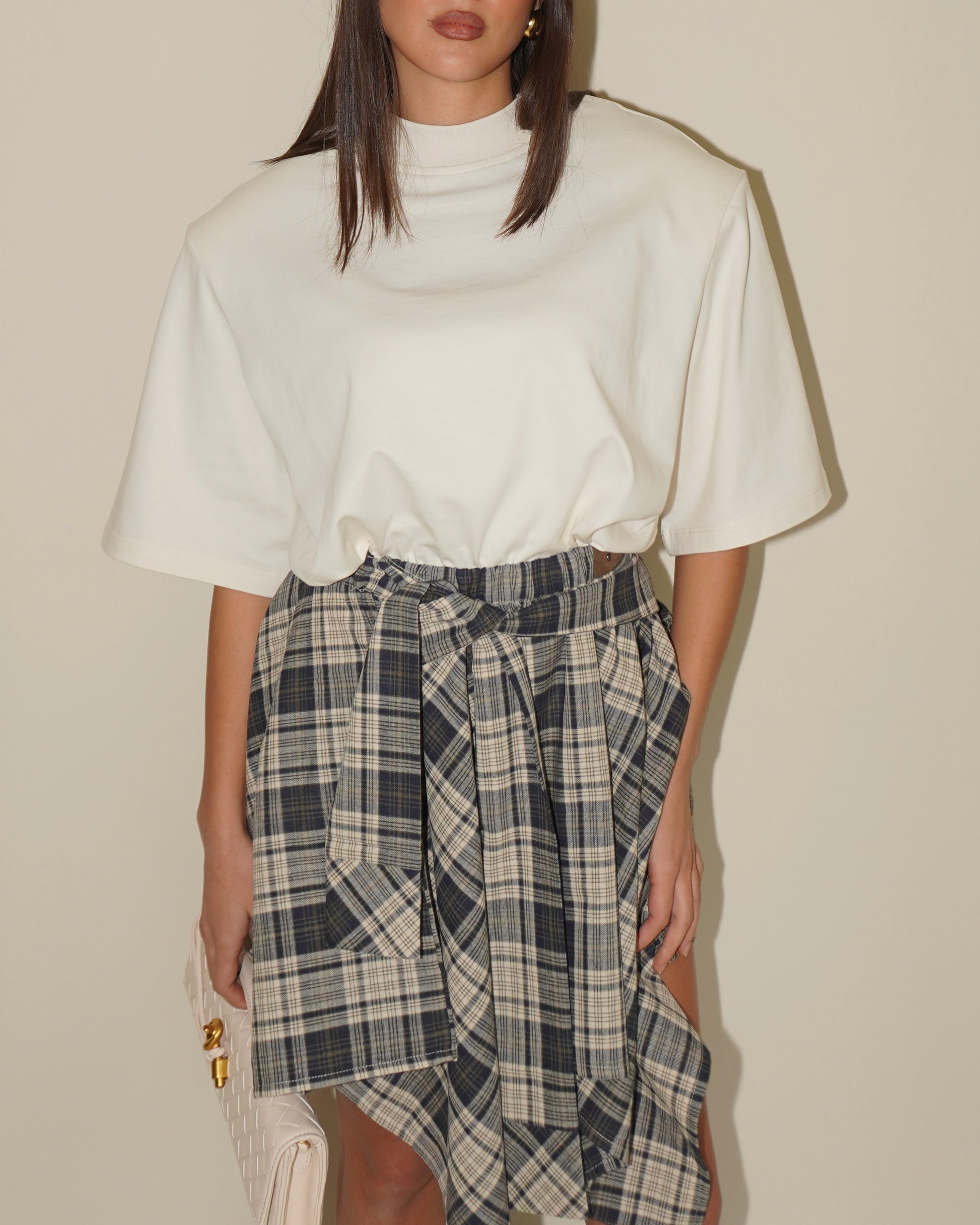 T-shirt oversize con spalle imbottite. Dettaglio girocollo alto.